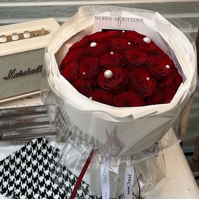 马依宁接过花,抬头对上了宋亚轩的视线,两人四目相对,露出了甜甜的笑容
