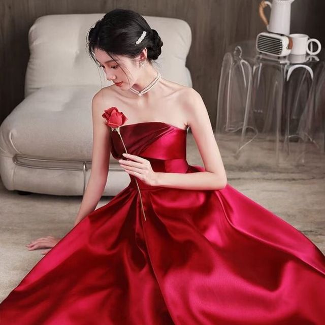 马依宁挑了一件大红色的敬酒服走进了试衣间,走出来江雅南和姚葭异口同声