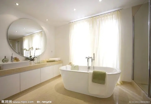 望着索大的浴室,窗外月色清欠,透过枝繁叶茂的梧桐树,浅浅地从落地窗外洒落进来,白色的法式窗帘在风中凌乱,硕大的镜子下面摆放着一瓶绿植,桌子上全是未开封的洗漱用品