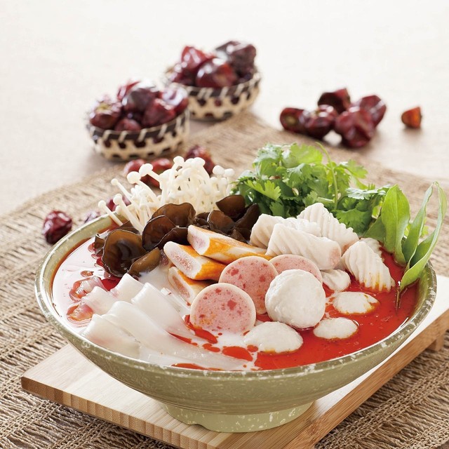 林允儿吞了吞口水,为难地看着自己面前的那碗还漂着红油的麻辣烫。