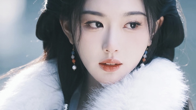 乌黑柔顺的长发垂落肩头,与纯白的衣物相互交织,为这冰天雪地增添了一抹温婉的韵致。她静静凝视远方,那双眸子深邃而宁静,恰似冬日里的一汪寒潭,让人不自觉地沉浸其中,忘却了周遭的寒冷与喧嚣。
