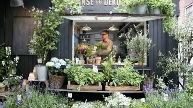金星语抬起头,手中紧紧抱着刚包好的花, 开心的询问着店员