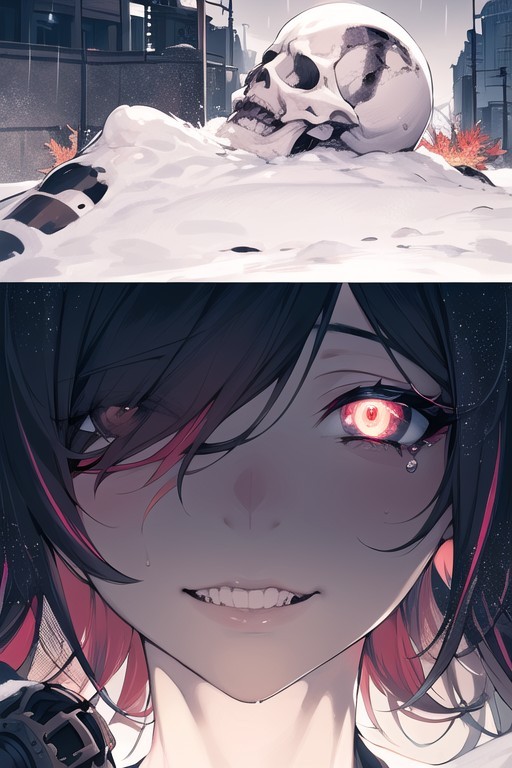 窒息感袭来,万影通红的左眼露出凶光,嘴巴露出疯狂邪魅的笑,她的双手狠狠抓紧卡冥基的脖子,使他窒息。