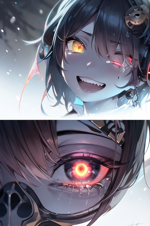 漆黑的怪物发狂了,它一跃而起,在漆黑的夜里不断起舞飞驰,跳跃到陋屋的各处,撞击窗户,想要把背后的万影摔下来,而它的喉咙那里卡着人脑,让其呼吸更加紊乱。