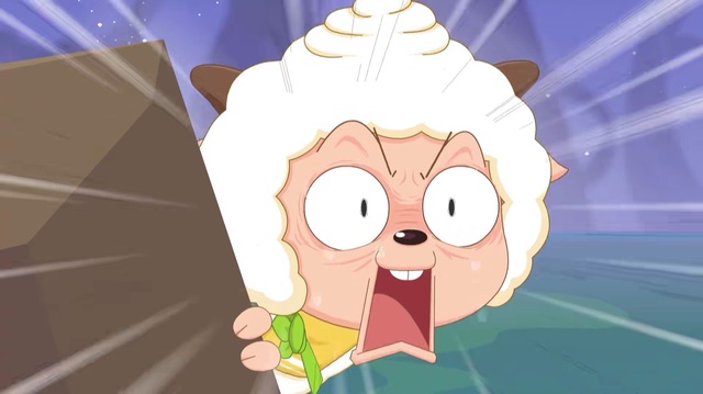 懒羊羊看着恢复原来的美羊羊冲向了她