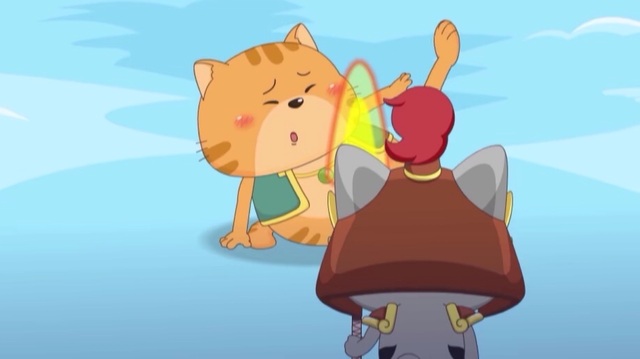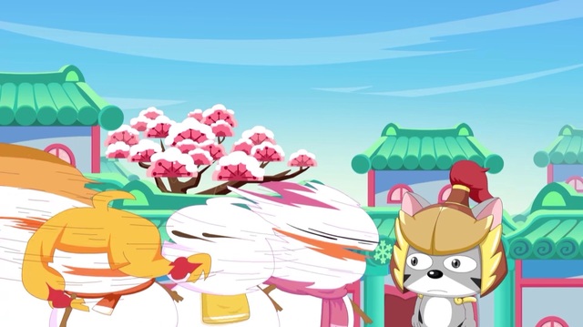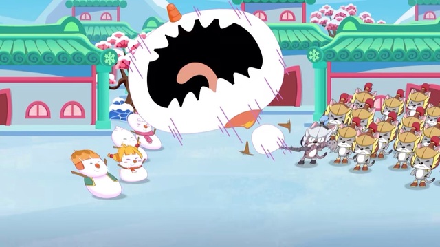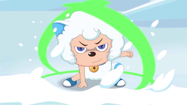 懒羊羊用奇云变变出了盾牌,可毕竟是云做的很快要被雪球打散了,灰太狼见此行景