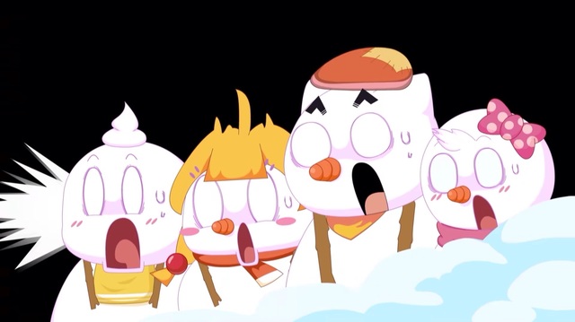 灰太狼拿起雪球扔向喜羊羊,来拖延时间
