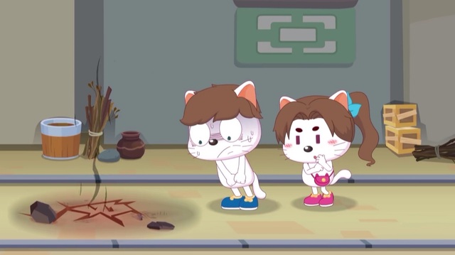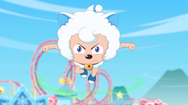 受不了的喜羊羊把可可扔掉了,被懒羊羊接住