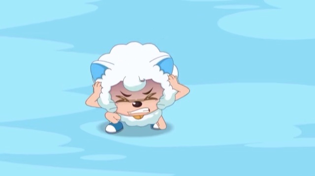 就当喜羊羊害怕的蹲下时,什么事都没有发生