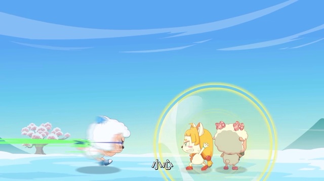 晚羊羊本想拦住喜羊羊的去路,结果也是被喜羊羊踹飞出去