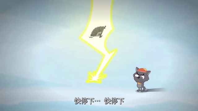 见喜羊羊举起寒冰扇,灰太狼大喊一声雷鸣闪!