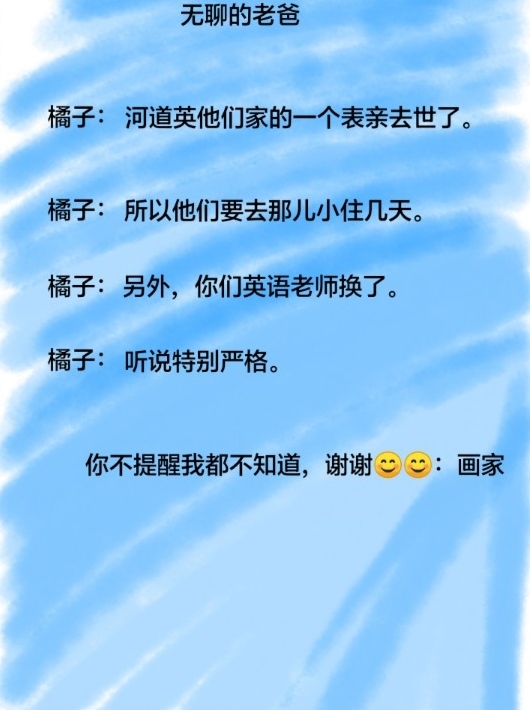“滴滴滴”手机铃声响起,拿起手机,备注:爱抽风的爸爸,点击接通,树屋里立刻被对方焦急的声音填满。