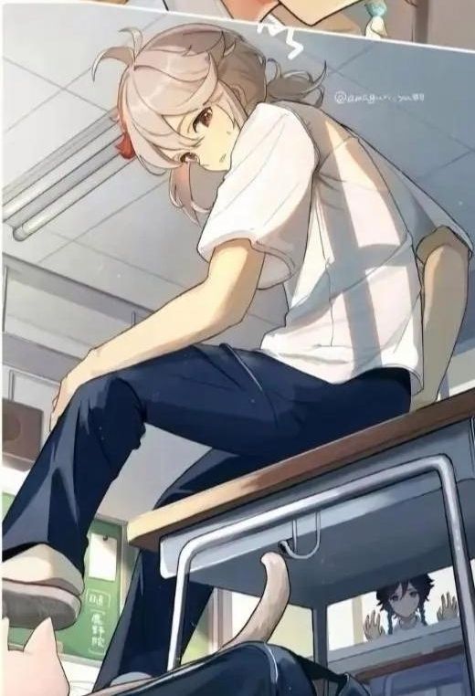走到万叶座位旁边蹲下,头搭在桌沿