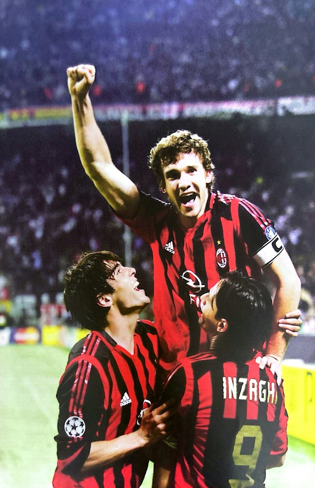 在AC米兰舍甫琴科因扎吉和卡卡组成颜值最高的三人组合2005到2006赛季欧冠四分之一决赛第二回合AC米兰主场三比一击败里昂首府琴科工作一球应加级梅开二度。