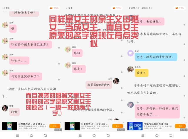 我并不是说这种类型的文只能我一个人写,或者是这些情节只能由我一个人写。我个人认为如果是一两个情节相似(当然不包括所写的话术,剧情走向一致)那还算是正常,可是情节相似过多就有些不正常了吧。