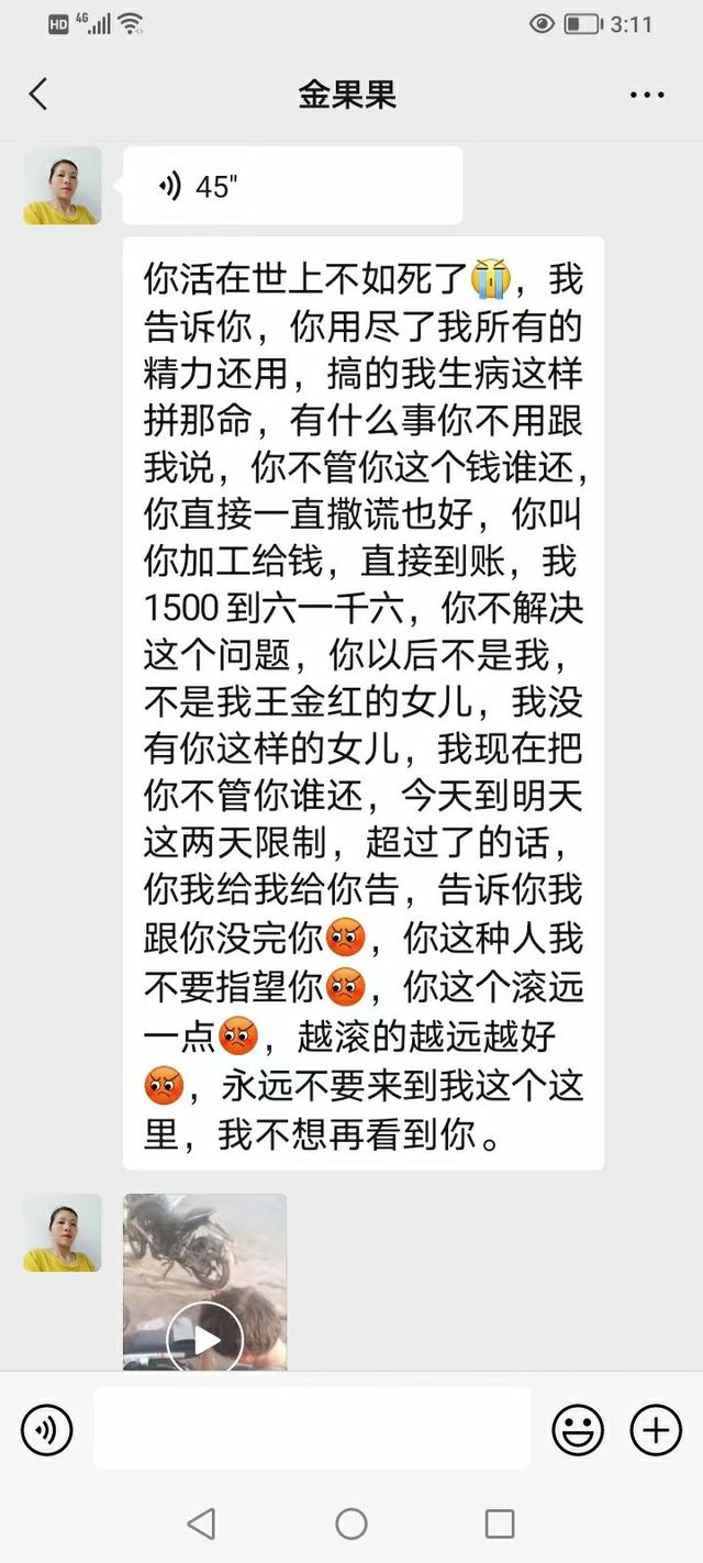 他妈又在讲,给你带了这么大了,都他妈的40多岁的人都50的人了,上班,可笑