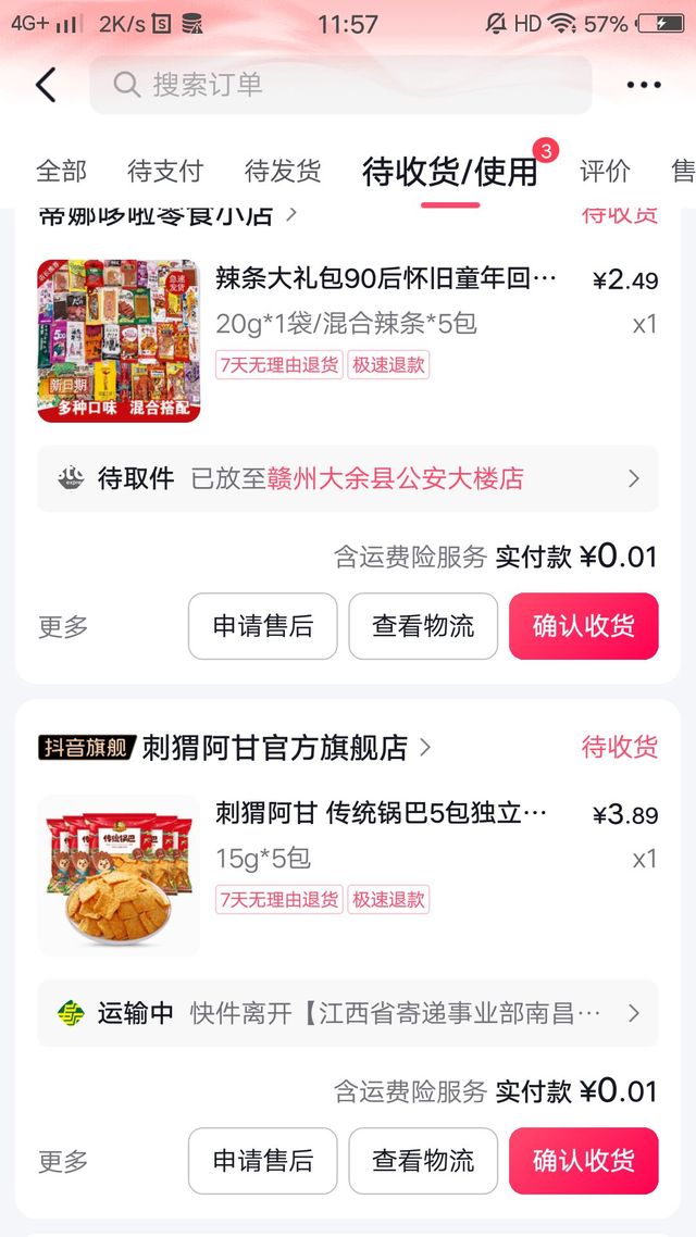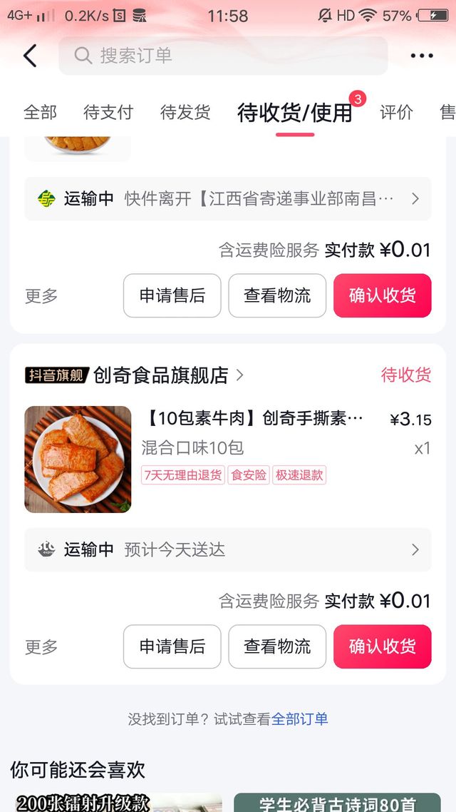 买的吃的到了