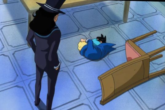 就在萨博情绪激动的时候,他的父亲一脚把萨博坐的椅子💺给踢倒了
