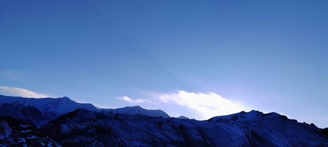 当我第一次踏上这片土地,仰望那片蓝天时,我被它的纯粹和宁静所震撼。在这片蓝天下,一切都变得如此渺小,如此微不足道。蓝天映衬着雪山、草原和湖泊,构成了一幅幅美不胜收的画卷。这里的天空没有一丝云彩的遮挡,阳光直射下来,洒在大地上,温暖而明媚。