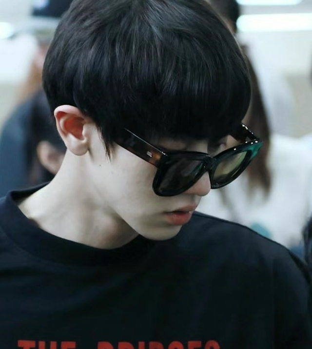 此时的朴灿烈戴着一副大大的墨镜,只紧紧跟在李知恩身后