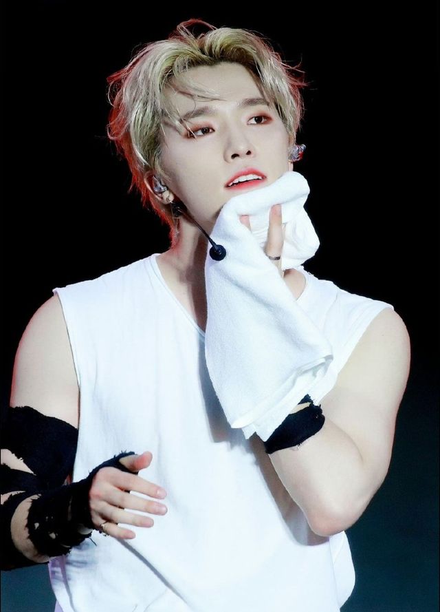 李灿从舞台上下来,白皙的皮肤比他那一头金发还要耀眼,整个人闪闪发光。汗珠来不及擦,顺着他透着厌烦的眉眼滴落。