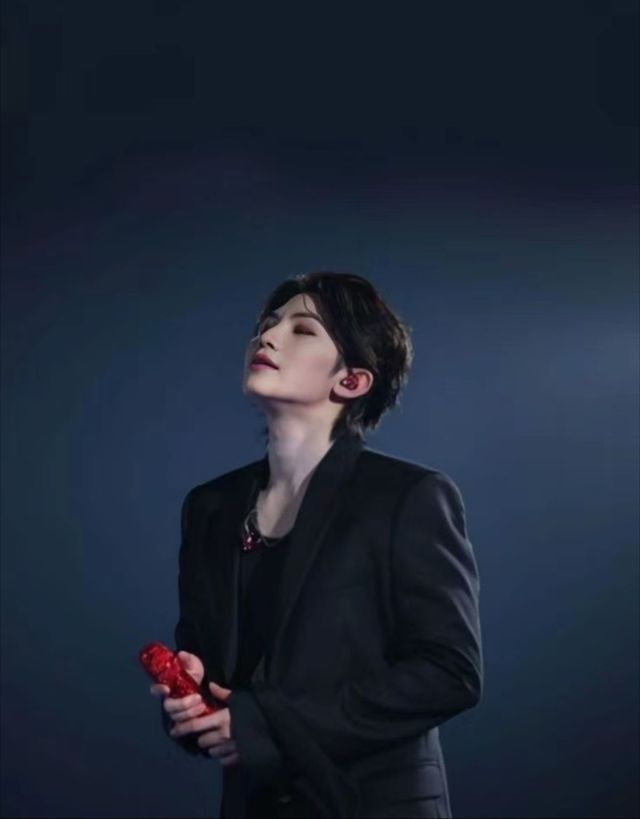 首先是站在领奖台后面的李知勋,一身利落沉肃的黑西装,领口一如既往开得很大,大片白皙的皮肤随着他仰头的动作乍隐乍现。