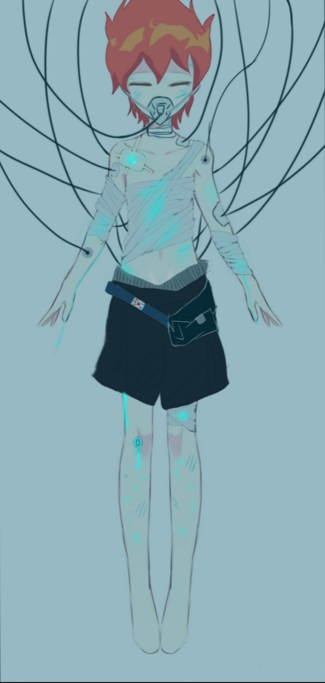 少年被关在巨大的实验液基活体生物培养罐里,昏迷不醒,膝盖上的伤口还在流血,只不过血却是蓝色的,犹如湛蓝的天空,身上插满了无数的管子,无时无刻的都在提醒着,自己被关进实验活体罐里,少年的意识还在苦苦支撑着,却无能为力