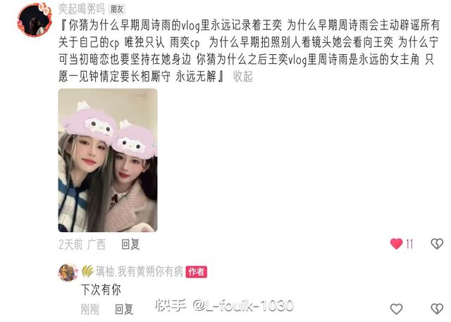 作者你说她们是商业cp 那wy为什么没有周诗雨睡不着 zsy为什么会觉得自己拍照难 wy为什么用诗情画奕的应援物 为什么wy有分离焦虑症 为什么wy会在直播对zsy说52941 为什么她们走哪都挨一起 为什么wy说自己和zsy365天都睡一起 为什么她们在711之后依旧紧握彼此的手 为什么zsy的荧幕初吻给了wy zsy又为什么给自己和王奕取cp名叫雨奕 为什么zsy说wy是自己除了亲人以外最重要的人 为什么wy在zsy生日那天给她送戒指 为什么周诗雨喜欢穿短裙,王奕会小心的护着 诗情画奕无敌 可以点播关注吗
