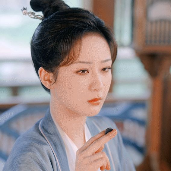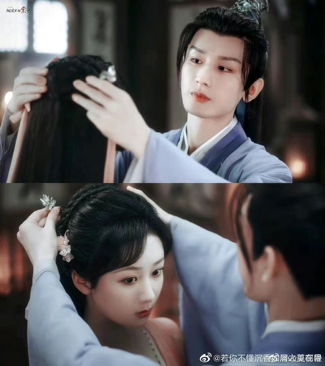 青瑶“乖乖的看着唐周拿沉花簪又给自己重新绑上的头发。”