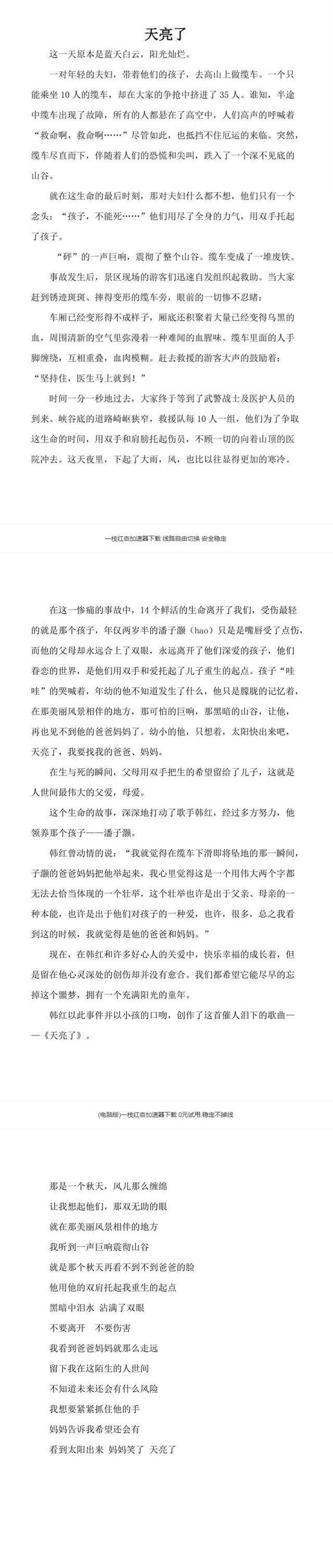 作者我这章可能会套用一下韩红的天亮了,以及这首歌的背景。