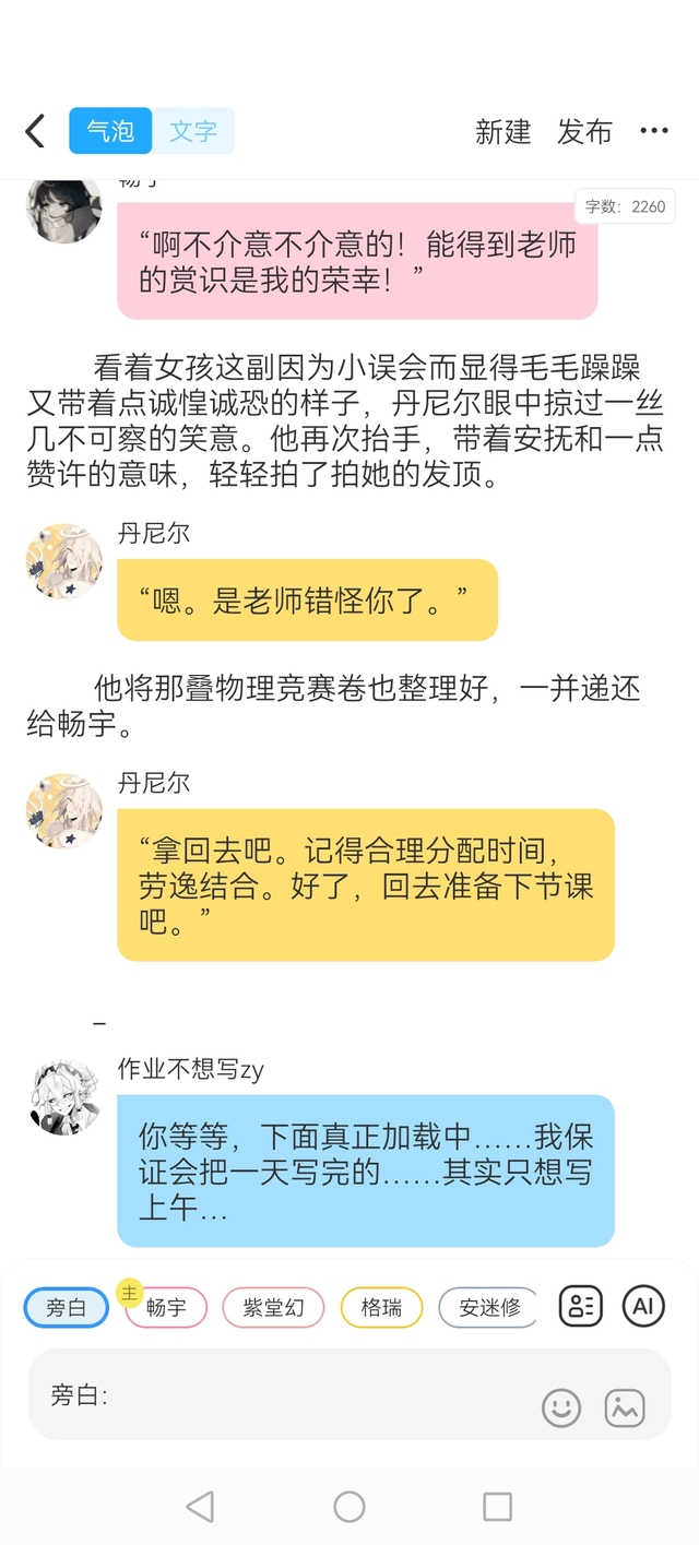 zy我不行了我现在换成APP写的时候才能把畅宇的气泡放右边,我一般都用浏览器写,然后我还发现了只要##就可以把她的气泡放旁边嘿嘿😆