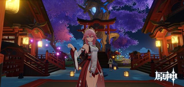 上图狐妖为八重神子,旁边的木框框就是鸟居啦。