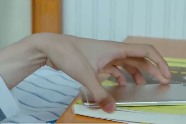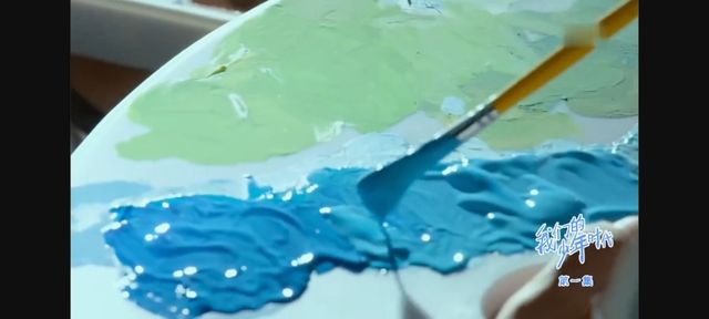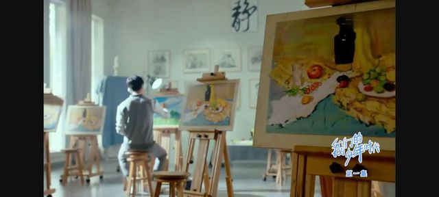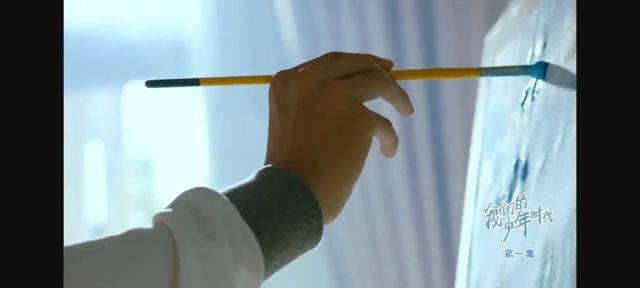 相比外面的熙熙攘攘,有个男孩正戴着耳机全情投入地挥动画笔。突然间,他的笔尖停在了半空,他缓缓摘下耳机,聆听着外面的呼喊声。他的目光紧紧锁在眼前的画作上,眼神中透露出一种深邃而遥远的沉思,仿佛正在那幅画里追寻和回味着一段无比珍贵的记忆……