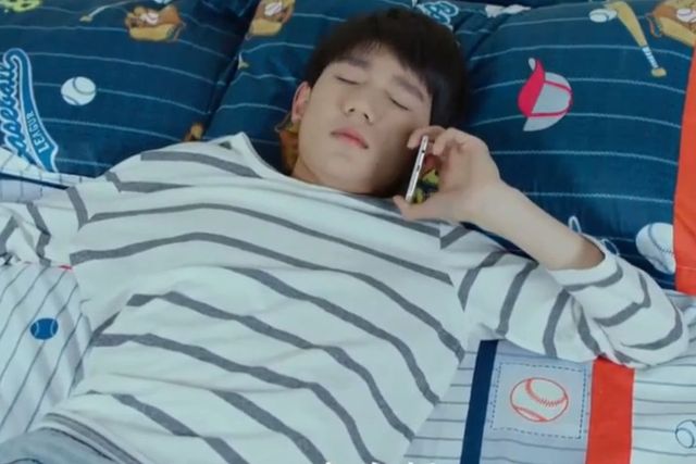 在一个阳光灿烂的清晨,一位少年正悠哉地沉浸在睡梦中。突然间,手机刺耳的电话铃声打破了宁静,他烦躁地用腿一扫,掀开身上的被子,全程闭着眼睛,全凭直觉摸索到床头柜上震动的手机。他迷迷糊糊地接通了电话,含糊不清地应了一声“喂——”。