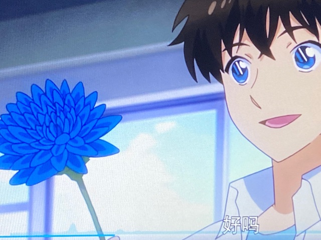 黑羽快斗将已经熄灭的蜡烛一摇,蜡烛变成一支娇艳的蓝色菊花。