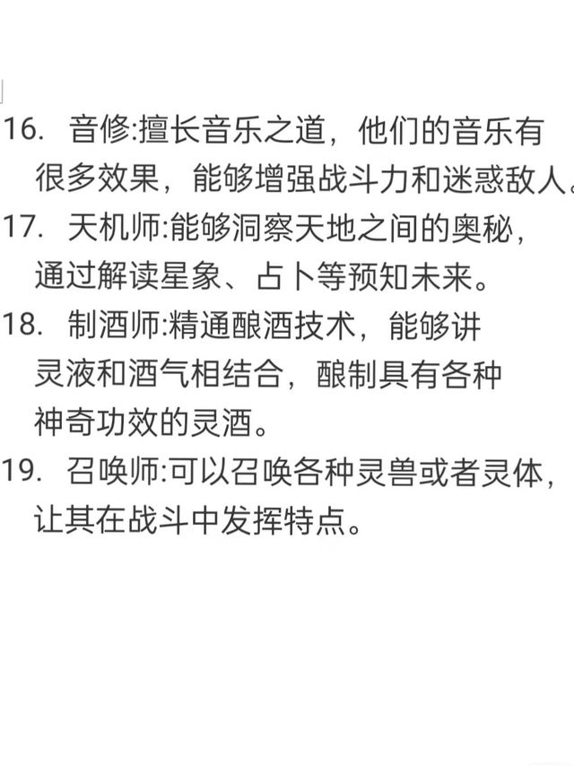这便是仙魔大陆的19种职业,玩家可自由选择一种,后期可通过秘宝或氪金,在随机觉醒第二种,里面还有非常非常非常非常多自我意识的NPC,Nbc出生就会根据他的身世背景,他自己可以选择多种职业,里面的NPC也是非常的强大哟,整个仙魔大陆跟一个真实的另一个世界一样,玩家在里面死亡,这个账号就只能重玩,当然,仙魔大陆有他自己的规章制度,但里面人的性命不能得到完全的保障,像古代的社会一样,里面人的服饰也都是古香古色