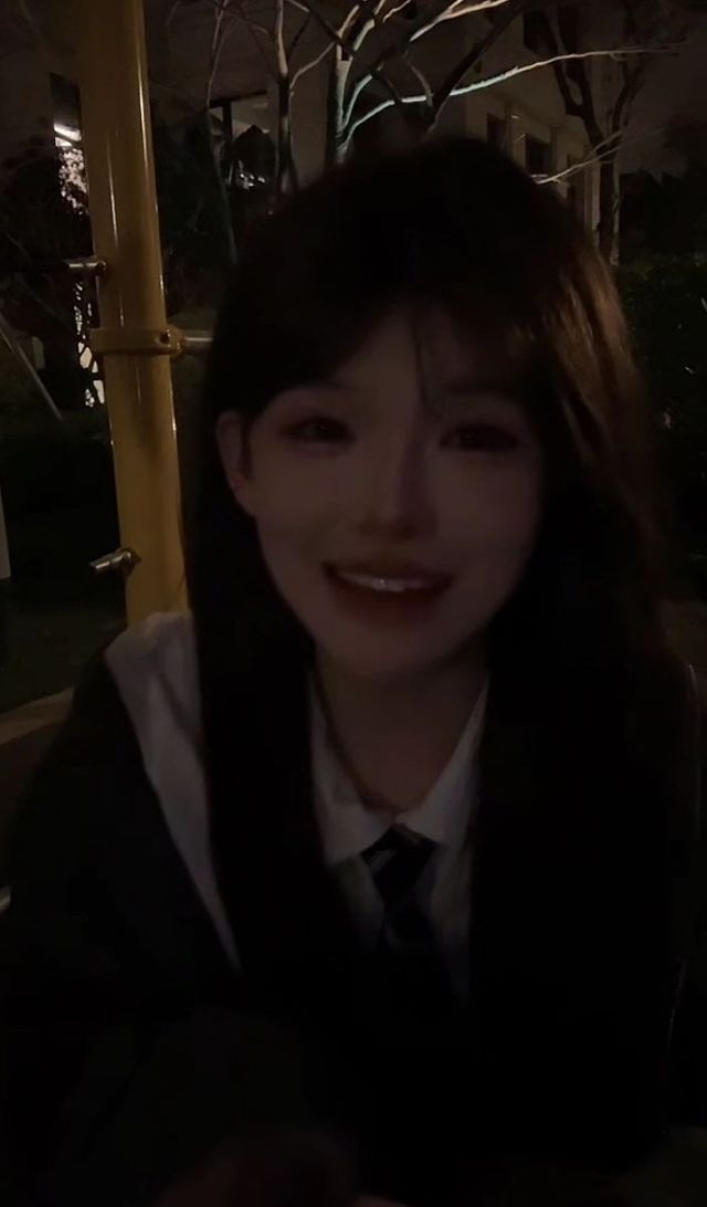 她穿上了那件外套,毕竟是宋亚轩的,她穿上显的有些大了。