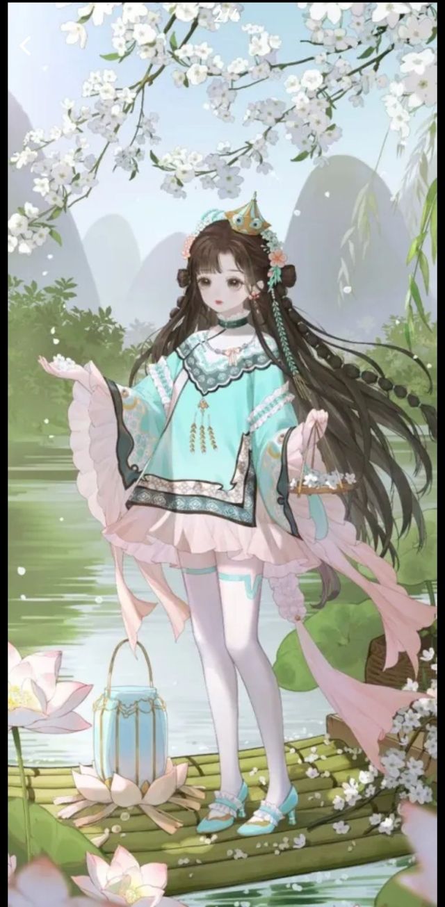“由擅长华丽风格的流晶玥所出品的最新套装薄荷香薰!渐变的青葱拼色宫廷束腰服和点缀深蓝色小花结的蓬蓬小洋裙清新可爱的造型绝对能够吸引所有人的目光!”