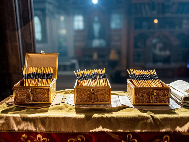 众人缓步来到供奉香火之处,眼前赫然摆放着三个精致的盒子,每个盒子里都装满了香气四溢的香。