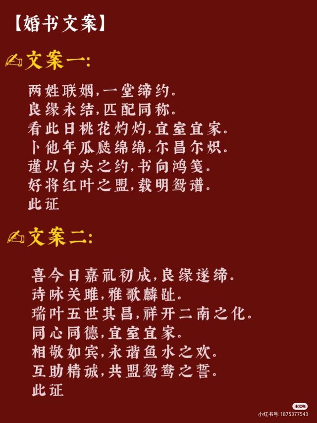 注:这是婚书誓词,婚书有许多版本。我都是从网上找的