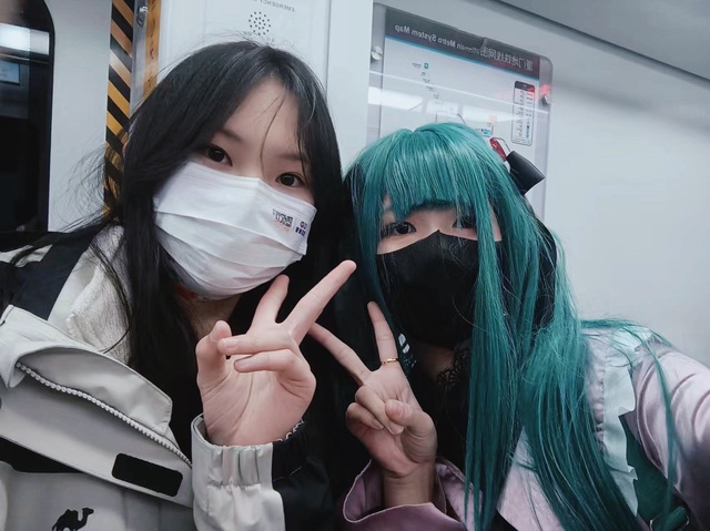 在地铁上偶遇一位cos初音未来的小姐姐,和她集了一张邮,拍照的时候腿都在抖,加微信的时候老紧张了,手都在发抖,老师突然说你不用这么紧张的😂天啊‼️人生中第一次集邮,紧张死了!