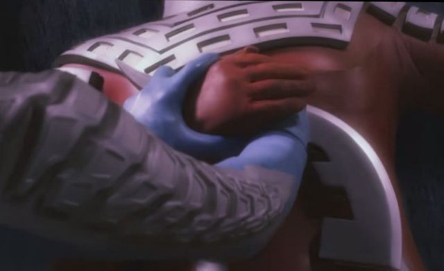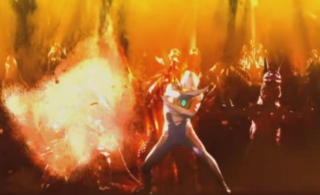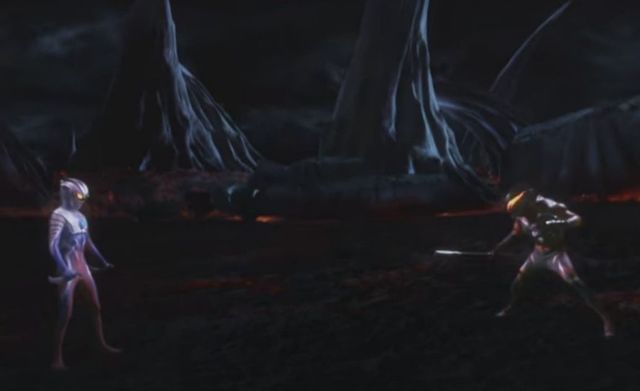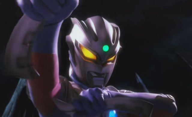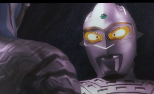 之后赛罗将终极战斗仪打飞,没了终极战斗仪的贝利亚能力大大减弱,赛罗随后摘下头镖放在胸前