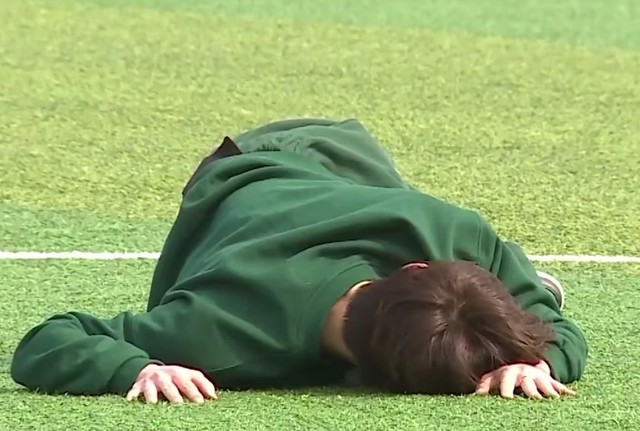 李硕珉和夫胜宽四只手缠绕在一起,两人皆是一脸迷弟的表情。