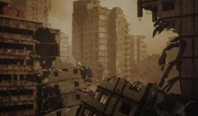 铅灰色的天空像一块沉重的幕布,曾经林立的高楼大厦如今只剩下残垣断壁,破碎的钢筋水泥横七竖八地倒卧着,昔日的旅游之城不再。
