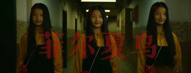 她们的长相一模一样,穿着也是一模一样,头发都是黑长直,头上别着一个红色蝴蝶结。