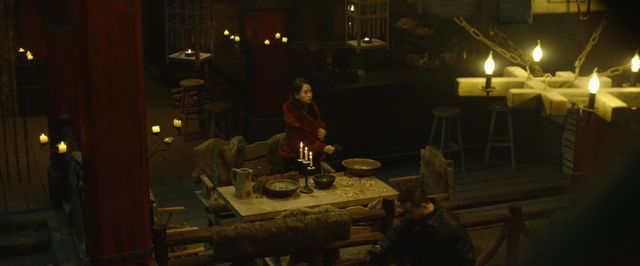 屋内正在收拾东西的老板娘,看了看进来的人们,似乎在数人数