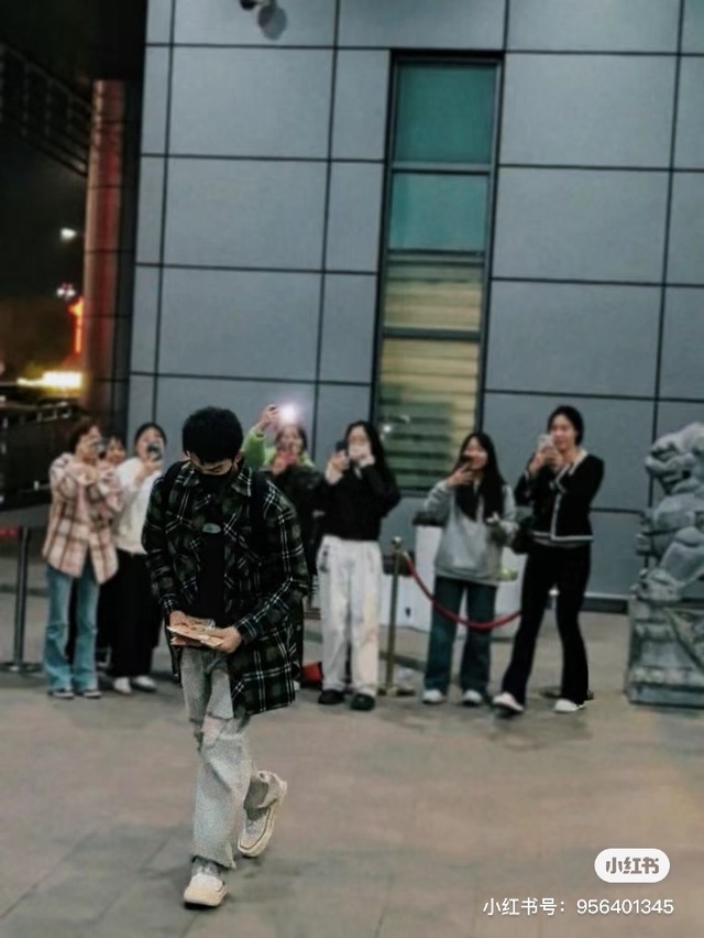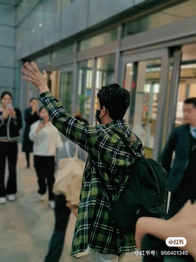 下飞机后走出到达就看到等着的很多粉丝,有序的站在门口,不妨碍到别人。磊磊笑着和大家挥手打招呼~