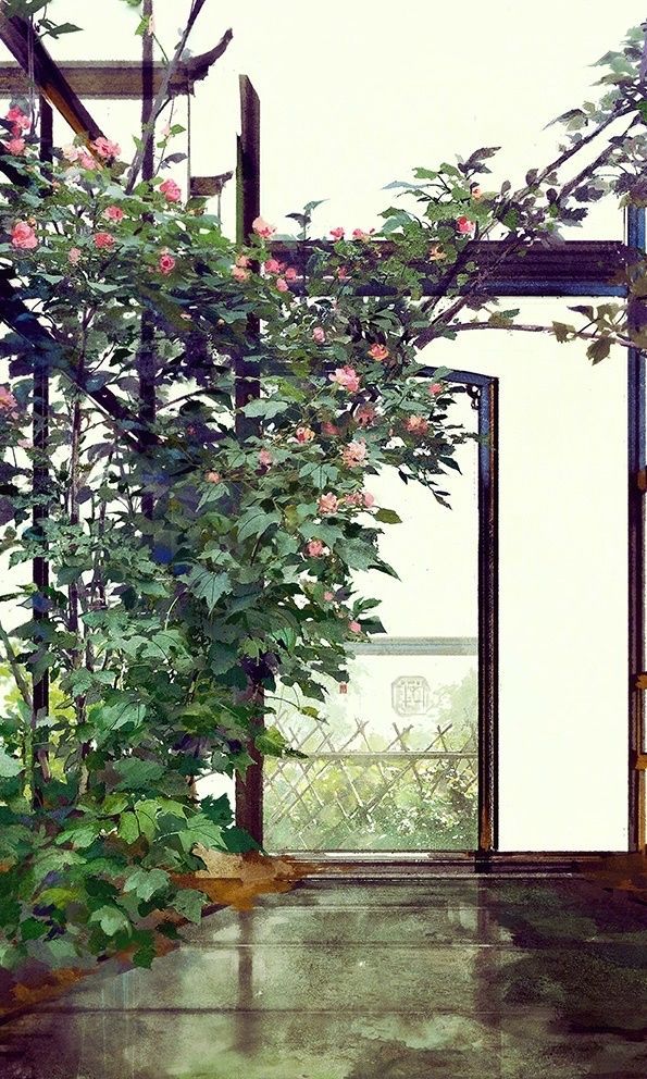 小黑站在议事厅门口,按照池晏的指示将两盆花摆到赏心悦目的位置。