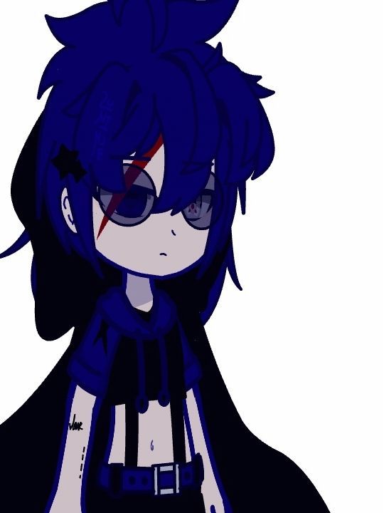 一位深蓝又偏点紫色的短发少年走了出来,带着黑色的墨镜,肩膀上披着黑色的披风,穿着件露腰的短衬衣,双色瞳显得异常的帅气,俊俏的脸上却带着一道明显的伤痕,头发左边还镶嵌着一个黑色的星星。