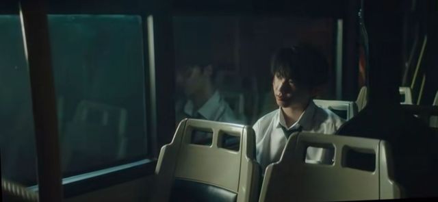 他并没有注意到你的身影,只是独自坐在那里看着窗外发呆,即使你上车了,这偌大的车厢里也只有你们两个人